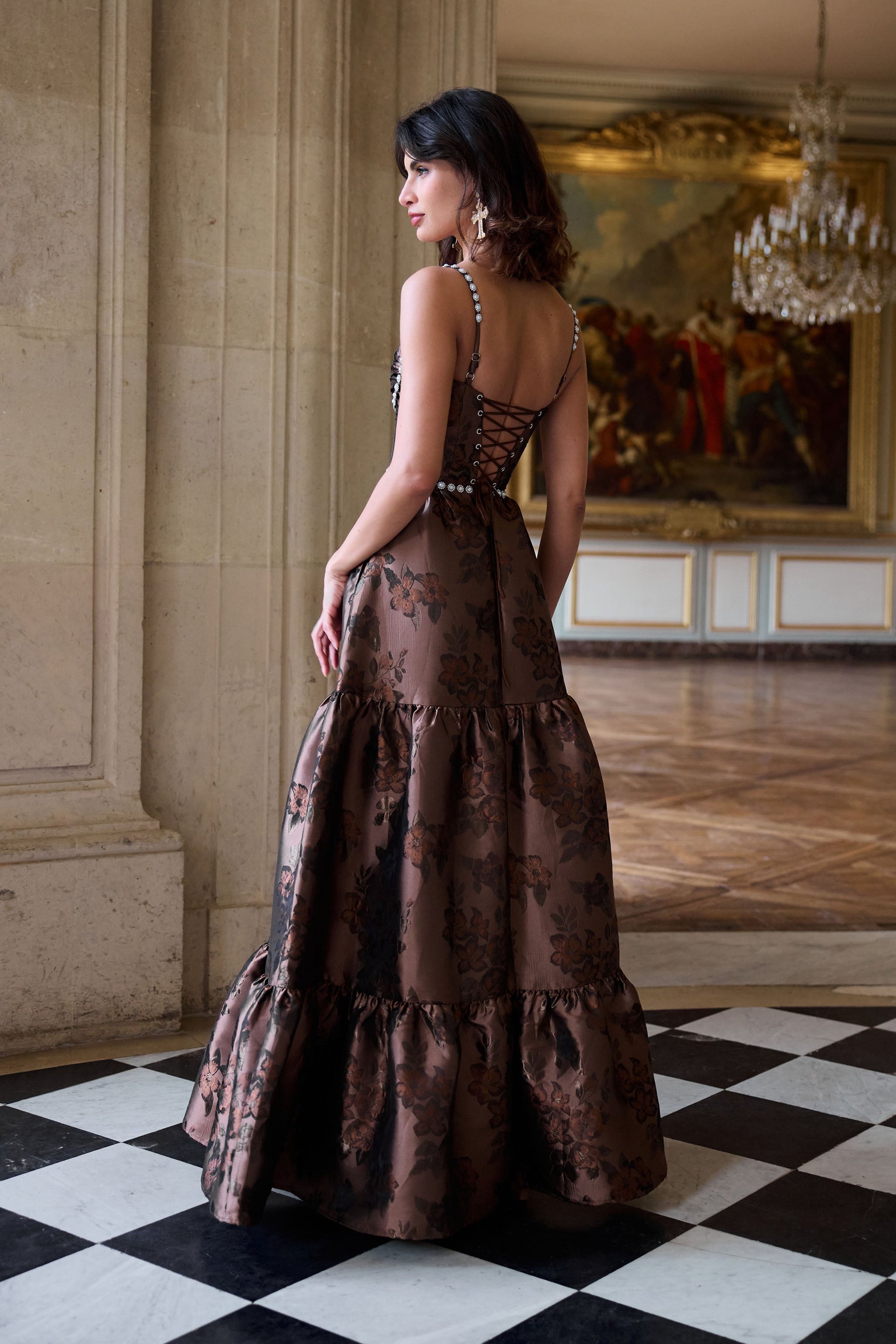 The Lucetta Dress in Cocoa Baroque Floral